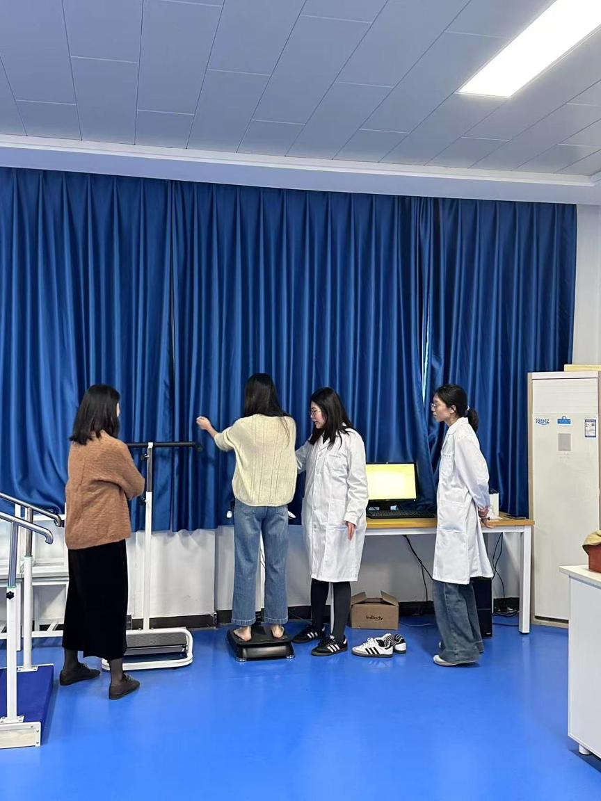 健康大数据管理与服务专业教研室主任任玉玉现场操作体脂分析仪,并即时解读数据,展示现代健康检测技术在个体健康管理中的应用。