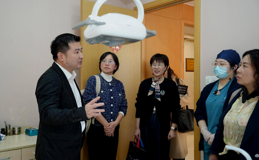 在张国强院长的陪同下,调研小组依次走访了口腔诊疗区、消毒供应中心、影像室及修复制作中心等核心区域,详细了解医院运营流程与设备配置,对其规范化管理和先进诊疗技术表示高度认可。实地参观后,双方举行座谈交流。张国强院长通过PPT系统介绍了医院的发展历程、运营现状与未来规划,并指出深化与高校合作是提升服务质量、加强人才梯队建设的重要途径,期待与学院携手共进。