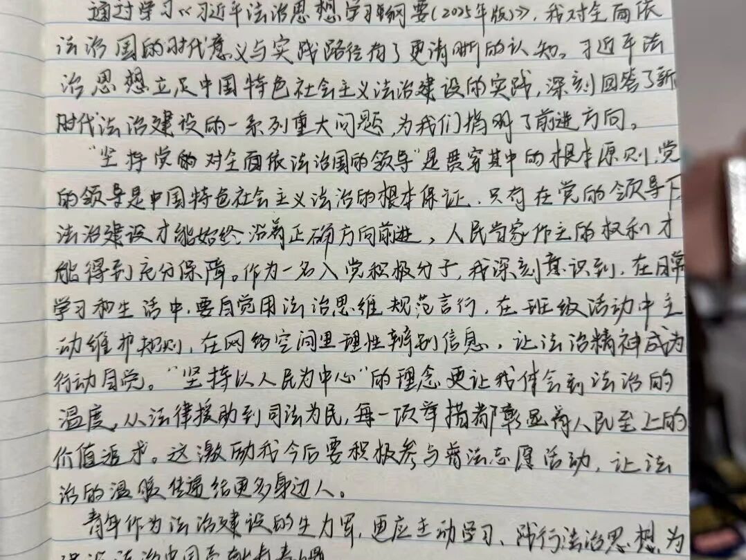 通过学习《习近平法治思想学习纲要(2025年版)》,我不仅提升了理论知识,更筑牢了法治思维,找准了实践方向,明晰了将法治思想与个人学习,职业发展,人生规划深度融合的切入点与行动路路径,在国家法治现代化轨道上为“幼有优育”贡献专业力量!